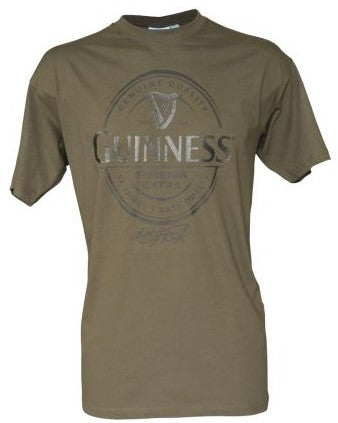 Official Guinness Merchandise. This khaki green t-shirt has a large black printed Foreign Extra label. It is 100% cotton so both comfortable and durable.