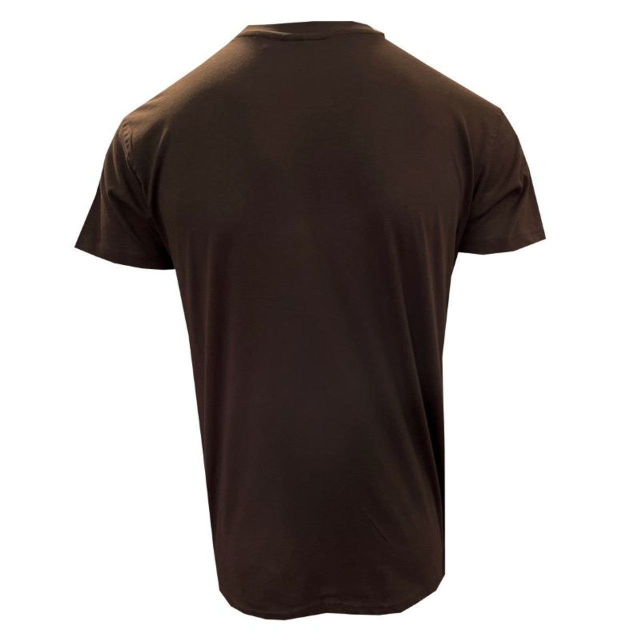 Guinness brown premuim t-shirt with beige / yellow bottle 'Extra Stout' label print. This t-shirt has a distinctive charm and tradition of Guinness and improves with every wear, perfect for casual outings or strolls through Irish pubs