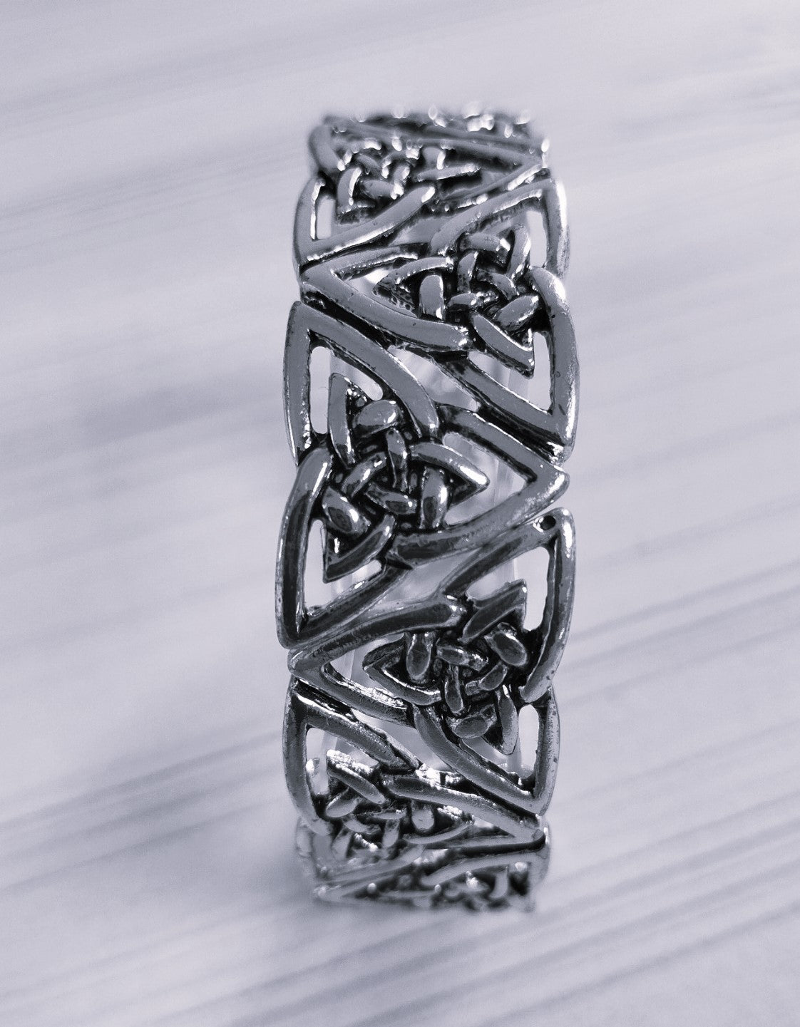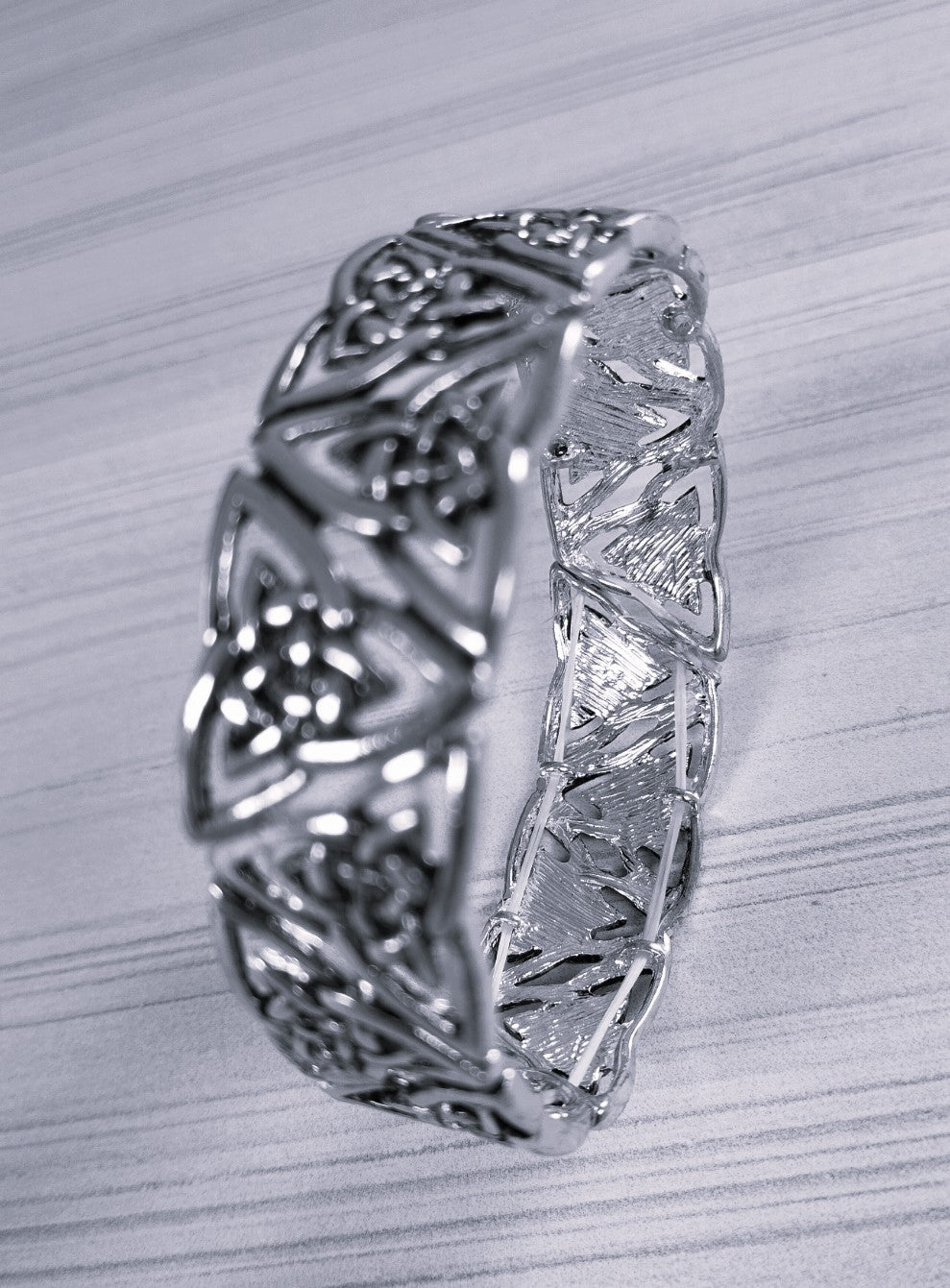 This beautiful bracelet is has a Celtic Knot, single layers of connected Celtic Knots or Trinity Knot in silver plate. With no clear beginning or end, this particular Celtic knot represents the unending cycle of life. The symbol dates back to the 7th century, and is considered to symbolize the connection between mind, body, and spirit.