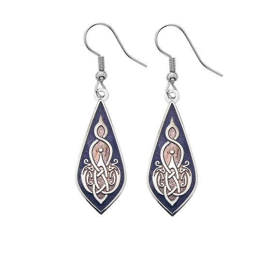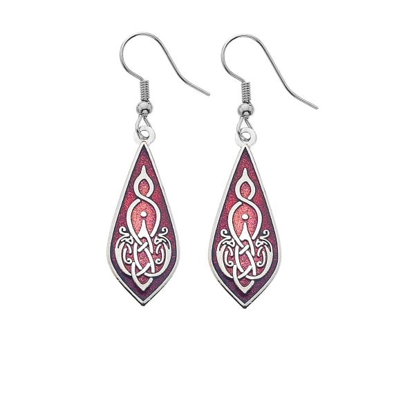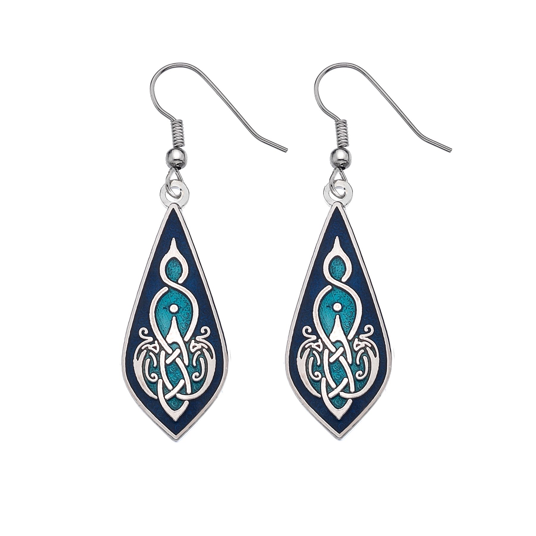 SeaGems Celtic Drop Earrings, Celtic Birds, with 4 color options, handcrafted in vitreous glass enamel, each piece is fired to 760°C.