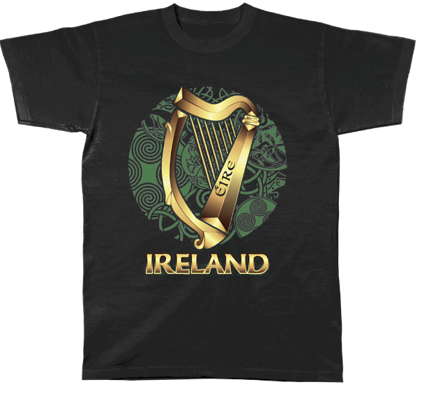 This elegant Irish t-shirt features a striking gold Éire harp set against a detailed Celtic background, finished with “Ireland” lettering below. Inspired by Ireland’s national emblem and ancient Celtic artistry, it’s a bold yet refined piece that celebrates Irish heritage with pride.