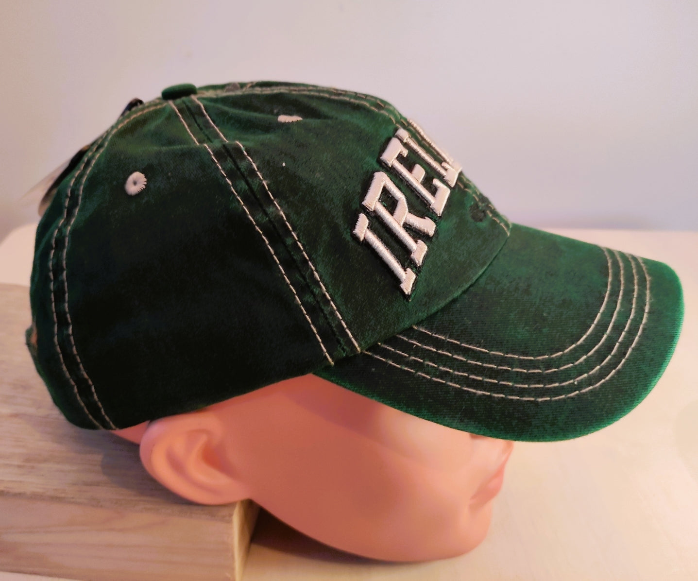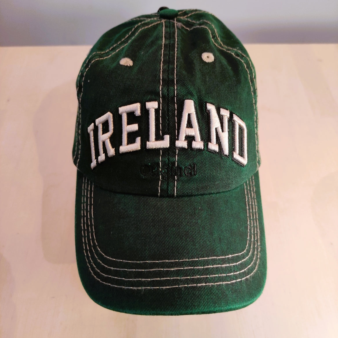 Ireland logo on 2 caps, dark green, Ireland in beige, dark navy Ireland in beige with red shadow, all embroidered on the caps, 4 lines of light contrasting color stitching on the peak, two lines on each of the six panels. This classic 6-panel baseball cap is timeless and collectible. The Cap is very well made and designed, it is hard-wearing and allows you to share your travel experiences. This flattering fit cap makes the perfect gift for just about anyone (or yourself!).