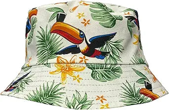 A fresh, summer-ready take on classic headwear. This cream bucket hat features an all-over tropical print with vibrant florals and toucan detailing, finished with subtle Guinness branding for a relaxed, standout look.