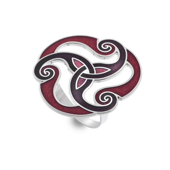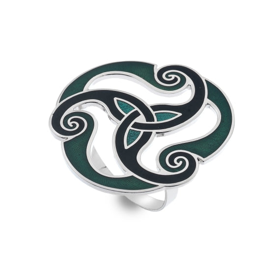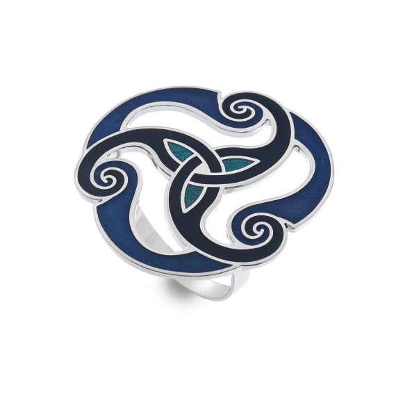 Triskele Celtic Scarf ring, silver plated and Blue enamel, one of Ireland's most loved symbols, symbolizes the triad of nature (earth, water, sky, handcrafted in vitreous glass enamel, each piece is fired to 760°C.